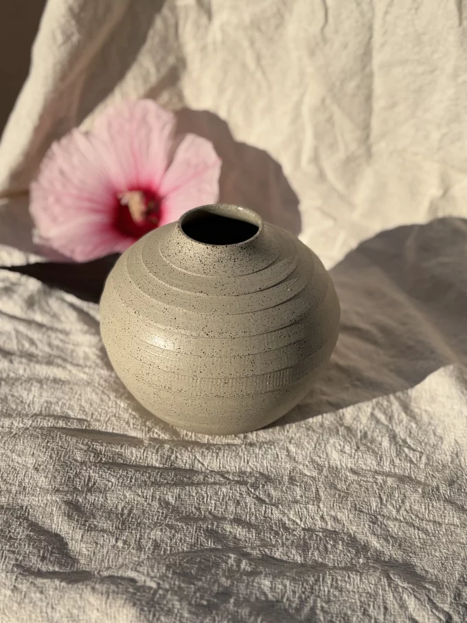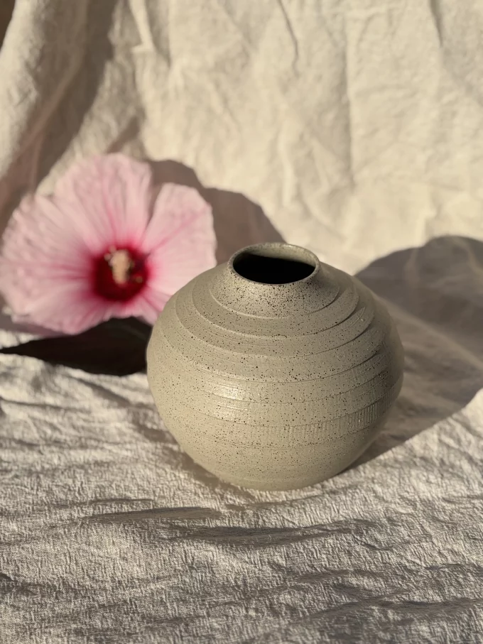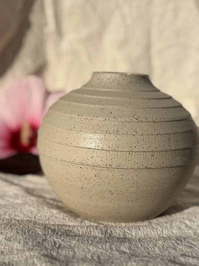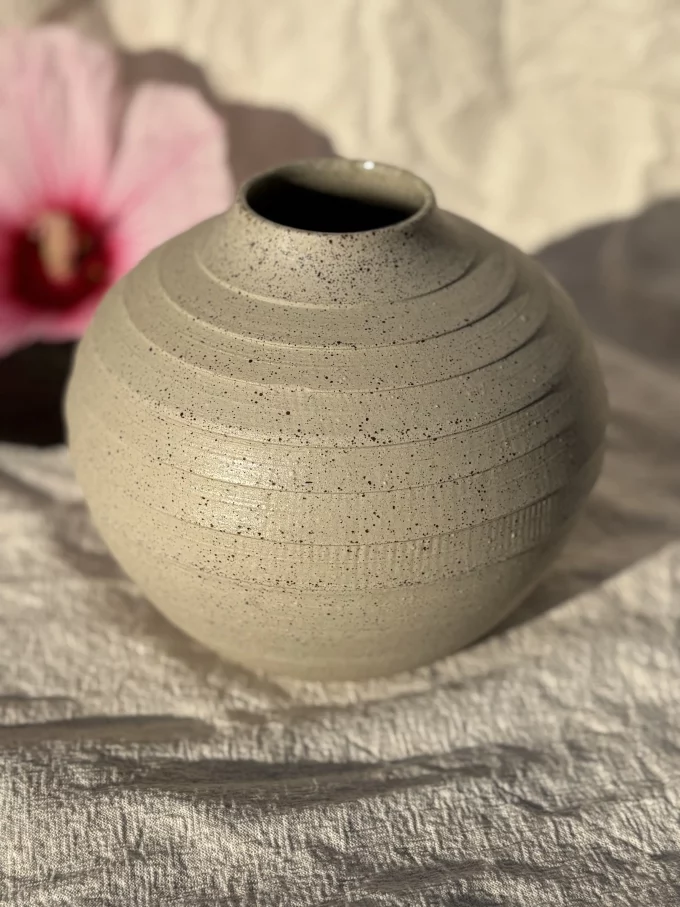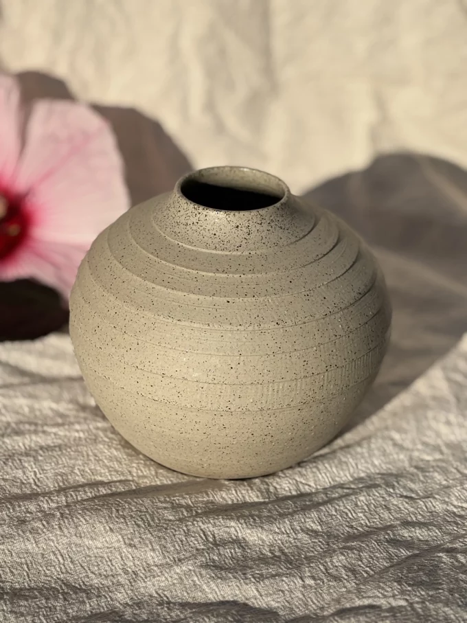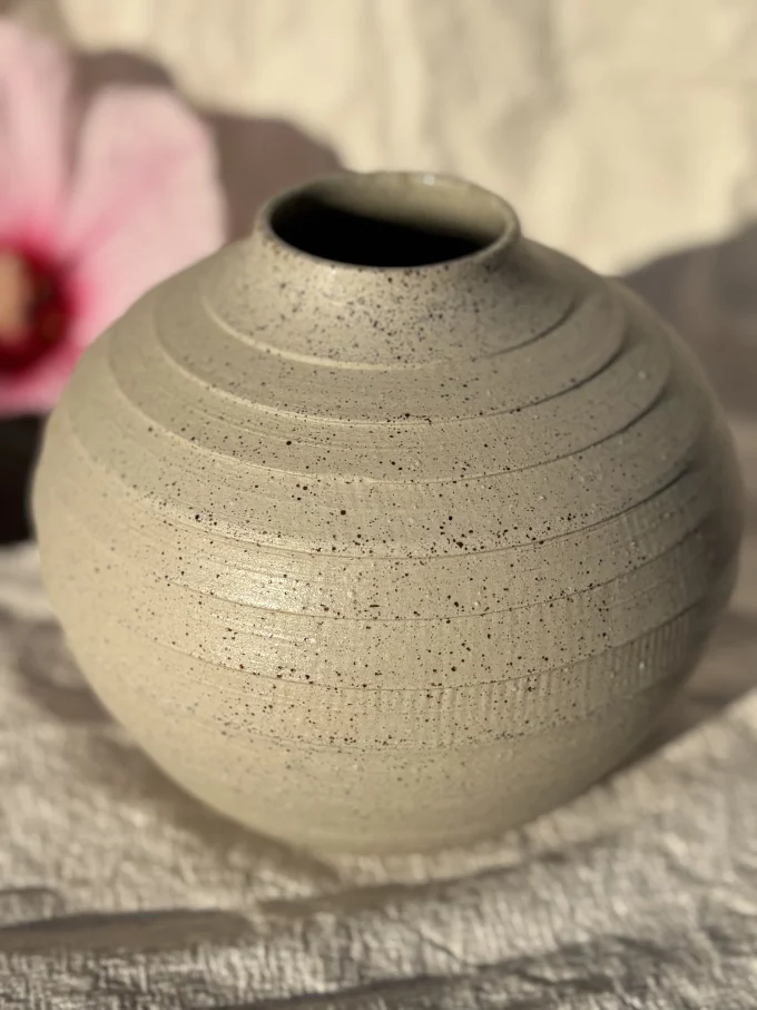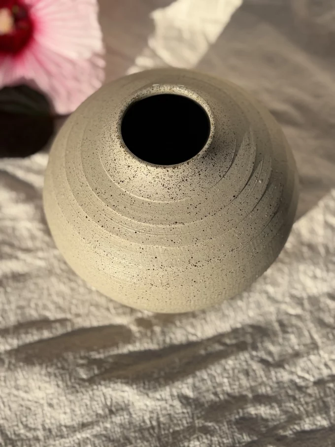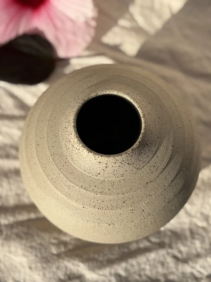 Vase tourné au tour de potier et chouchouté dans mon atelier. Aucun vase n’est fabriqué en série, ce qui en fait une pièce et un modèle unique.