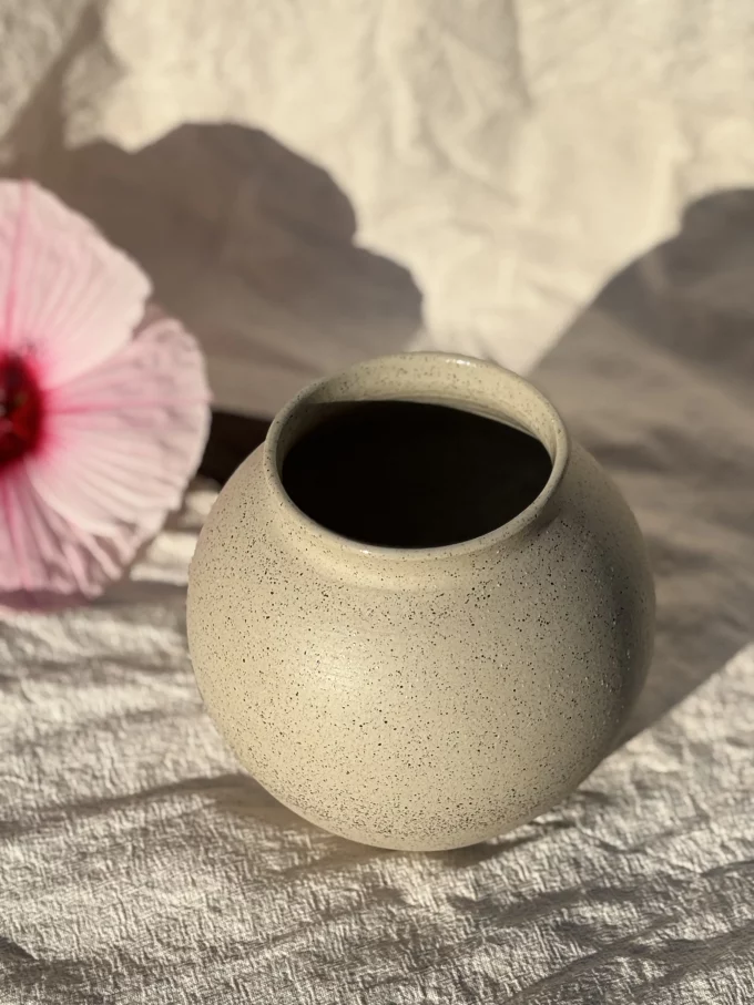 Vase tourné au tour de potier et chouchouté dans mon atelier. Aucun vase n’est fabriqué en série, ce qui en fait une pièce et un modèle unique.